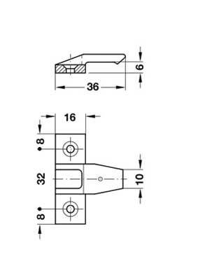 - Zastosowanie: łącznie z częścią mocowaną do płyty (do nabycia osobno) służy do łączenia elementów pod kątem prostym np. mocowania paneli do konstrukcji ramowych.