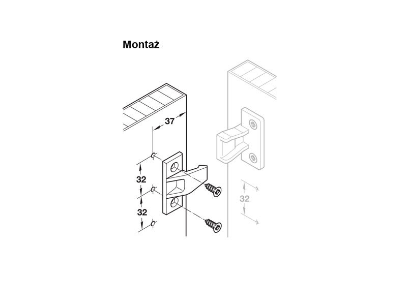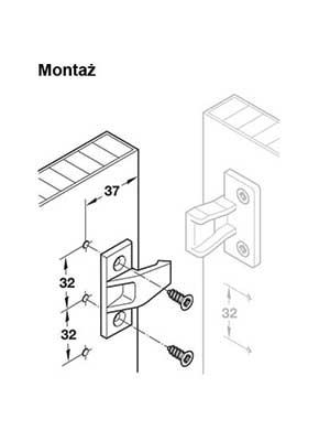 - Montaż: przy pomocy wkrętów do płyt wiórowych lub wkrętów z łbem stożkowym 3,0 lub 5,0 mm