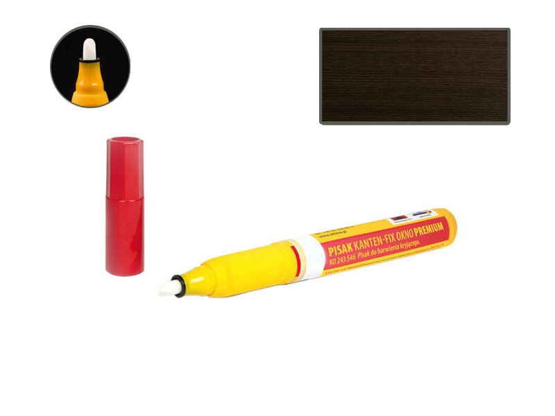 Pisak kryjący, szybkoschnący, wodoodporny, nieścieralny, odporny na promienie UV, można lakierować. Idealny do barwienia krawędzi mebli, naroży okiennych i innych uszkodzeń na powierzchniach z drewna, płyt i tworzyw sztucznych.