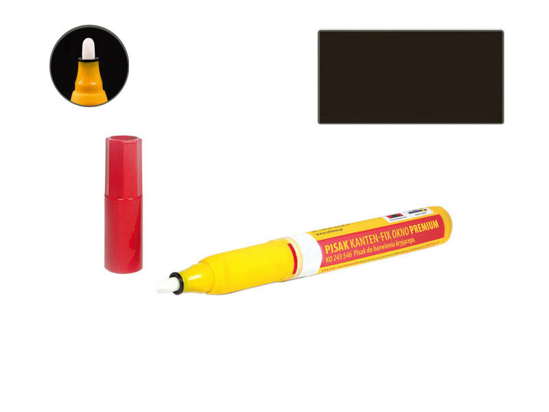 Pisak kryjący, szybkoschnący, wodoodporny, nieścieralny, odporny na promienie UV, można lakierować. Idealny do barwienia krawędzi mebli, naroży okiennych i innych uszkodzeń na powierzchniach z drewna, płyt i tworzyw sztucznych.