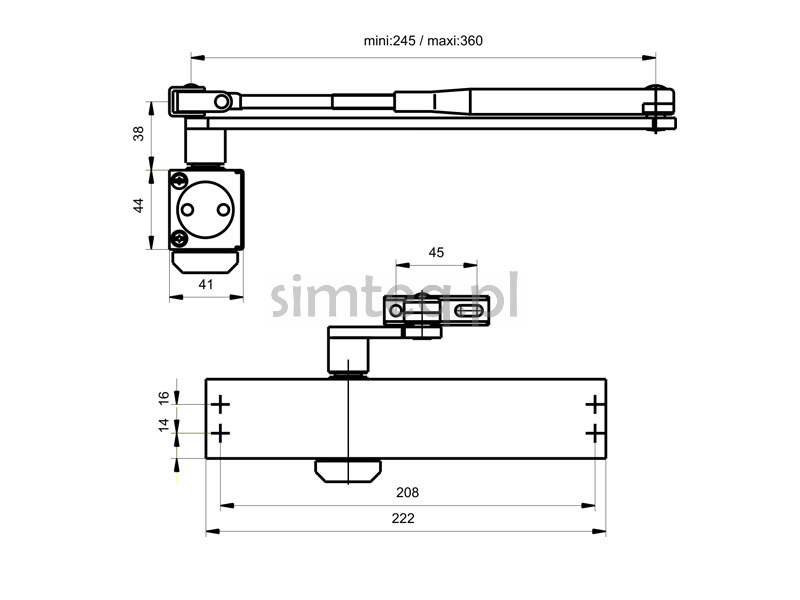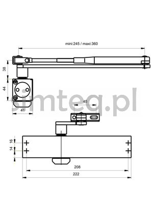- Małe wymiary samozamykacza – wysokość 44 mm, szerokość 43,5 mm; Montaż możliwy bez płyty montażowej;