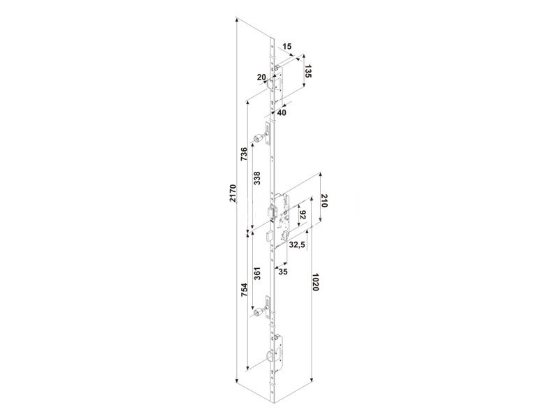 - Rozstaw zamka [A] odległość od osi klamki do osi wkładki 92 mm