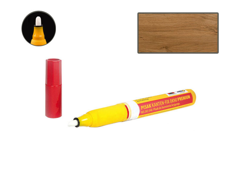 Pisak kryjący, szybkoschnący, wodoodporny, nieścieralny, odporny na promienie UV, można lakierować. Idealny do barwienia krawędzi mebli, naroży okiennych i innych uszkodzeń na powierzchniach z drewna, płyt i tworzyw sztucznych.