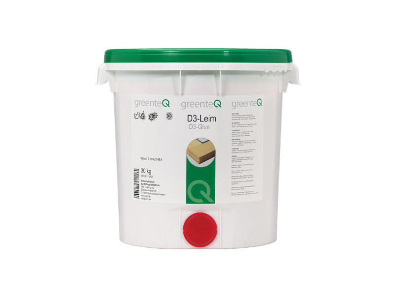 Klej greenteQ D3 to jednokomponentowy klej o dużej odporności na wodę, spełniający wymagania grupy obciążalności D3.Klej greenteQ może mieć różnorodne zastosowanie: powierzchniowe klejenie folii dekoracyjnych, klejenie metodą wysokiej częstotliwości, klejenie korpusów i klejenie montażowe, klejenie spoin deskowych i bloków z drewna miękkiego i płyt wiórowych oraz z drewna twardego. Obróbka spoin klejowych jest bezpieczna dla narzędzi.