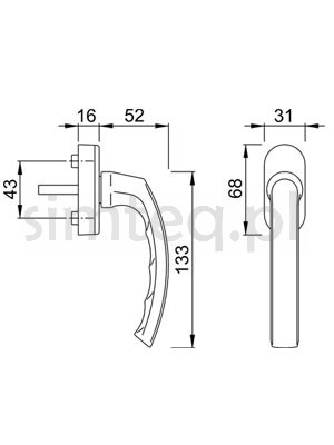 - Skok klamki: 45° - zalecana do okna wyposażonego w mikrowentylację