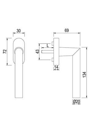 Klamka okienna z trzpieniem jest mocowana do skrzydła okna za pomocą wkrętów i łączy się z okuciem obwiedniowym - dlatego należy dobrać trzpień o odpowiedniej długości