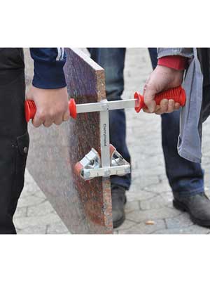 Uchwyt transportowy zaciskowy CARRYMATE T-Grip TG 120P to uchwyt używany parami, nadający się do przenoszenia wielu różnych materiałów. Dowolne miejsce przyczepienia umożliwia noszenie z wyprostowaną ręką. Uchwyty transportowe przyczepiane i odczepiane jedną ręką. Wszystkie części CARRYMATE®, które dotykają transportowanego materiału, są pokryte specjalną powłoką, która chroni nawet najdelikatniejszą powierzchnię i nie powoduje zadrapań. Ergonomiczny uchwyt zapewnia również stabilność noszenia przy obracaniu.