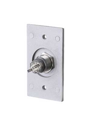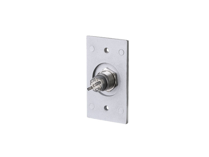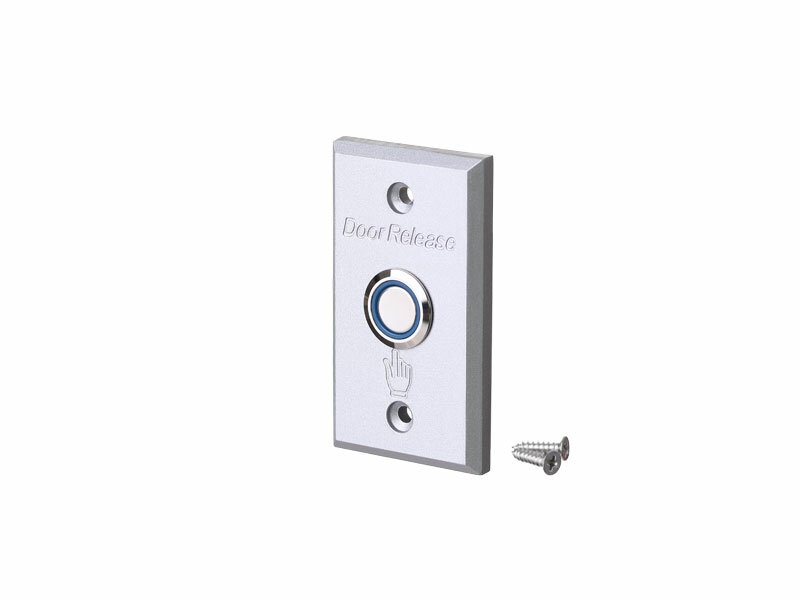 Przycisk wyjścia prostokątny aluminiowy z podświetleniem LED zasilanym napięciem 12 VDC.