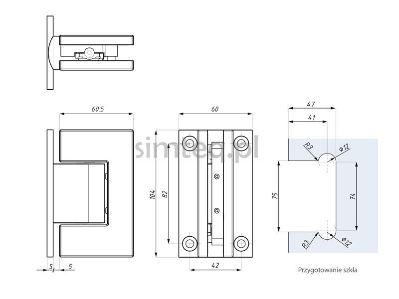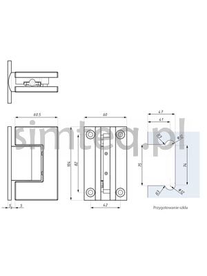 Zawias sprężynowy TGAH901 szkło ściana, płytka osiowa - satyna